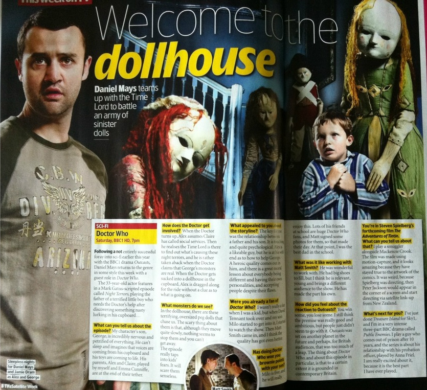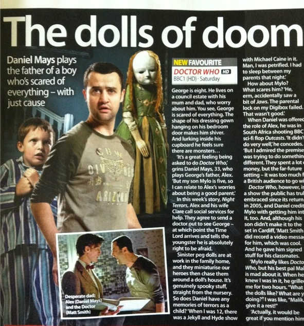 25-08-2011 - Doctor Who Magazine The new issue of Doctor Who Magazine came out today, and it features an interview with Mark Gatiss about his episode, Night Terrors, which Danny stars in. There are also a couple of new pictures of Danny as Alex! Click the thumbnails below for bigger sizes.