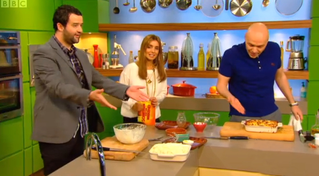 16-10-2011 - 'Something For The Weekend' Screencaps Danny was on BBC2's Something For The Weekend this morning, talking about Public Enemies, Tintin and other roles! He also did a bit of cooking! If you want to watch the episode again, it will be up on BBC iPlayer for a short while. I've also made some screencaps of the episode, which you can view in the Gallery! Here are a few examples below...