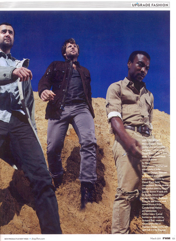 24-03-2011 - Danny in FHM Magazine There was a small feature about Outcasts in the March edition of FHM magazine, with three lovely pictures of Danny, along with his co-stars Ashley Walters, Jamie Bamber and Michael Legge. There is also a short interview. You can click on the thumbnails to see the scans, or you can view even bigger versions in the Gallery!